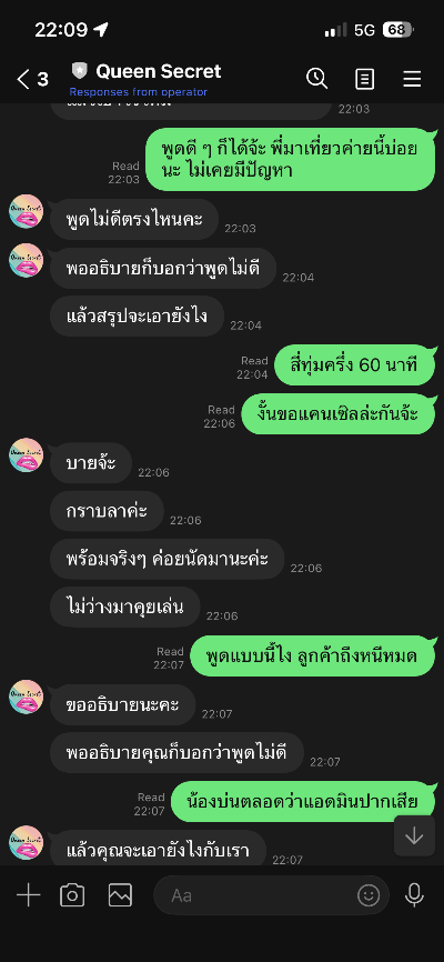น้องไม่ได้ทำอะไรผิด แต่ขอรีวิวแอดมินค่ายนี้หน่อยล่ะกัน เริ่มจากทักไปนัด แล้วเห็นว่ารอนานเวลาไม่ได้เลยขอแคนเซิล แต่กลับวีนพูดจาหมาไม่แดกใส่ ทั้ง ๆ ที่เที่ยวค่ายนี้บ่อย น้อง ๆ บริการดีทุกคน เขียนรีวิวเชียร์ให้ตลอด เจอแบบนี้บอกเลยว่าสงสารน้องค่ายนี้จริง ๆ แทนที่จะได้งาน ลูกค้าหนีหมด ล่าสุดแคปแชทไปแปะใน telegram ค่ายนี้ โอ้โห โดนดีดออกจากรุ๊ปอย่างไว ลบที่แปะไว้ทิ้งไปด้วยแล้วมั้ง โคตรกระจอกเลย ดีแต่แคปไลน์ชาวบ้านแล้วไปประจานในกรุ๊ป แต่ไม่เคยบอกชาวบ้านเค้าหรอกว่าตัวเองพูดจาส้นตีนขนาดไหน